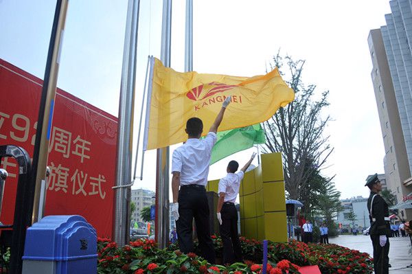 上午7時50分,雨後的天空風和日麗,康美醫院彩旗招展,現場呈現一派熱烈、祥和、喜慶的氣氛,廣大市民也争相駐足觀看。8時整,升旗儀式正式開始。随着一聲令下,護旗方隊震撼出場;軍樂隊現場演奏雄壯的《義勇軍進行曲》,國旗冉冉升起;随後康美藥業司旗也跟着《康美之歌》飄起在廣場上空。